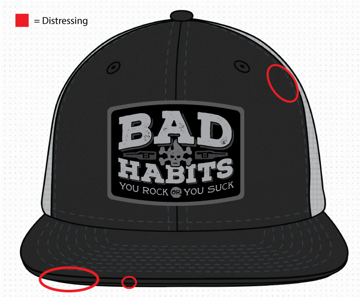 You don't have to indulge in bad habits to like the Bad Habits, but it helps :) This band is tons of fun, and we designed the merch to match. Some digital-to-physical process examples are shown below (just for fun).